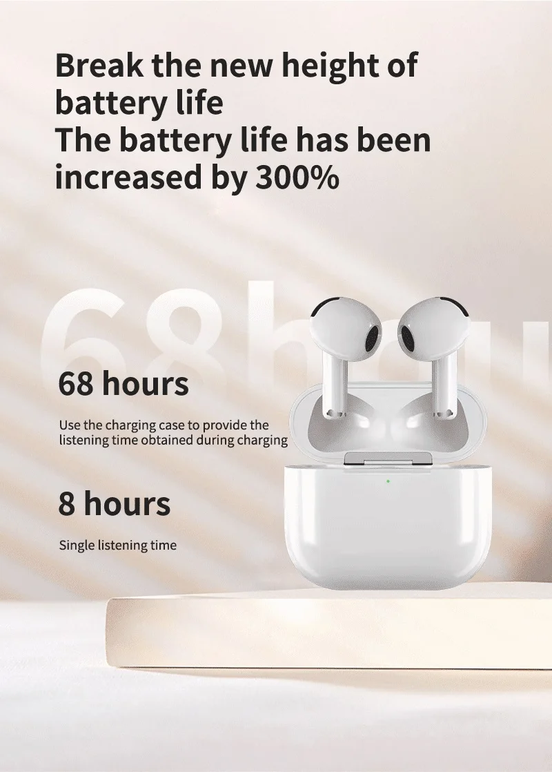 Air 4 – kabelloses Bluetooth-Headset mit Ladecase, integriertem Mikrofon und Touch-Bedienung, aktive Geräuschunterdrückung, wiederaufladbar, kompatibel mit allen Smartphones.